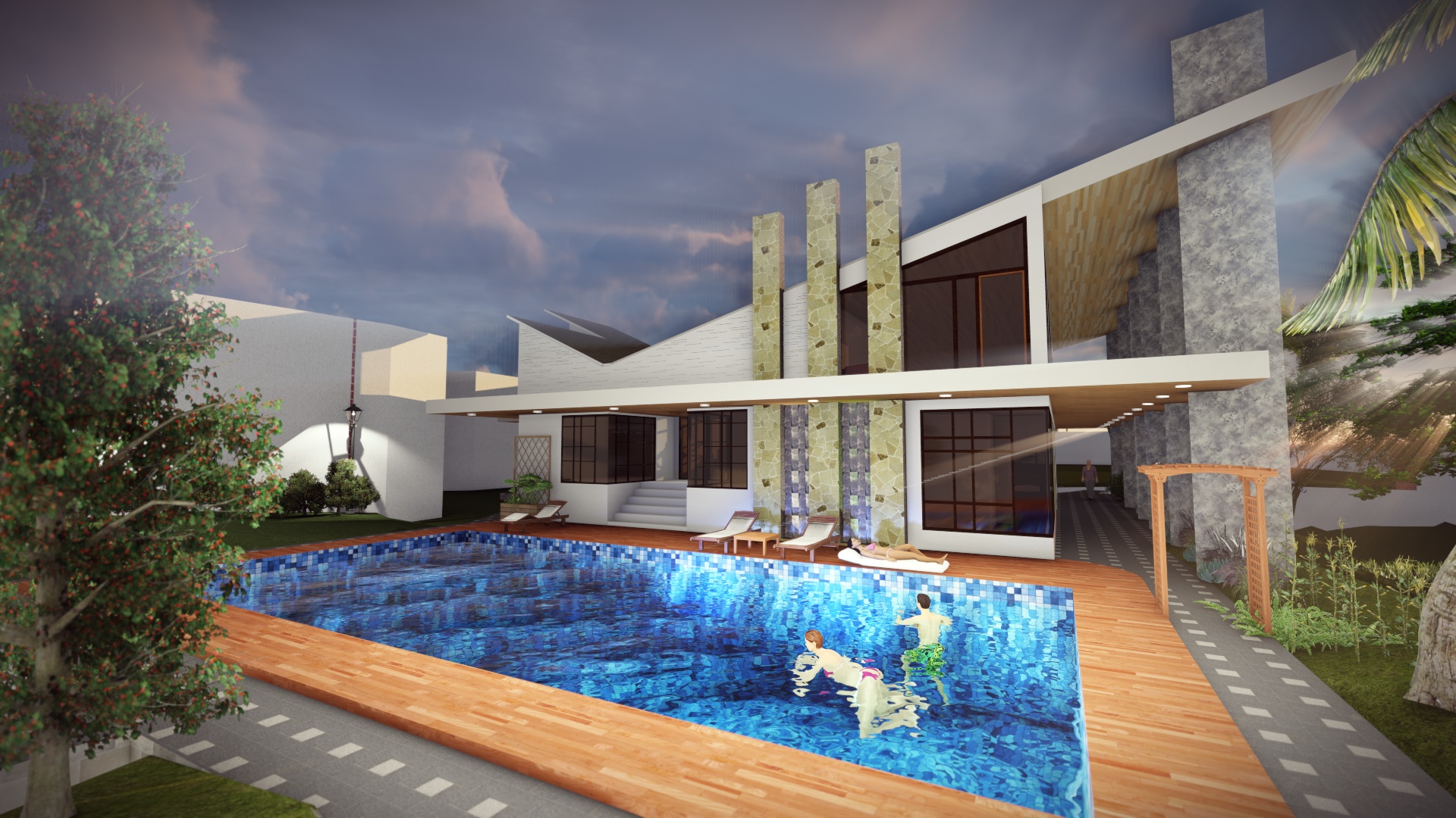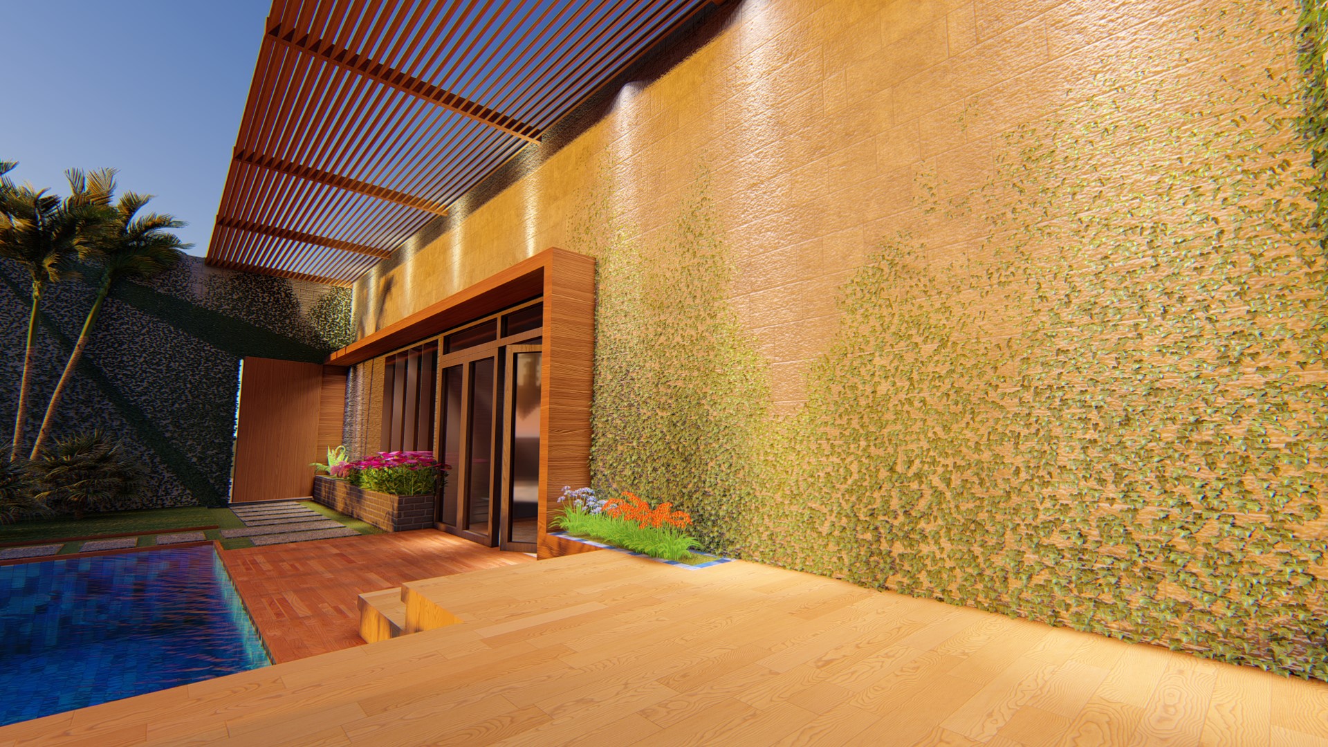 Located in Maruya, Jakarta, the house is really big but there is no backyard or pool that could be used for the family to hang-out. The owner want to build a pool which could be build without doing anything to the existing house. The general concept is to create a big access from the existing house with super wide sliding door directly facing to the pool with canopy to protect the entrace from the rain. The ulin wood used for the floor as well as bench area and the natural andesit rock used for the finishing for the wall area. There also vegetation as a shading during the day and afternoon.