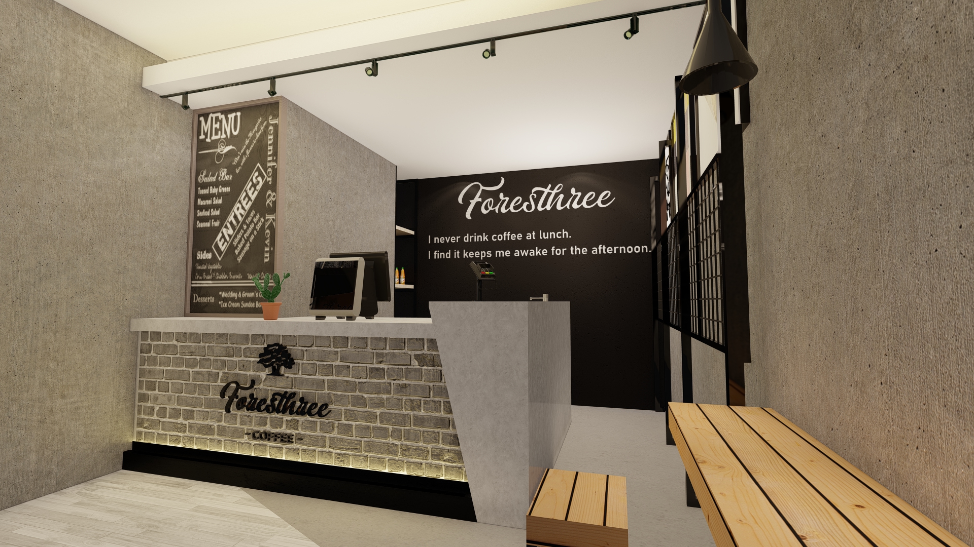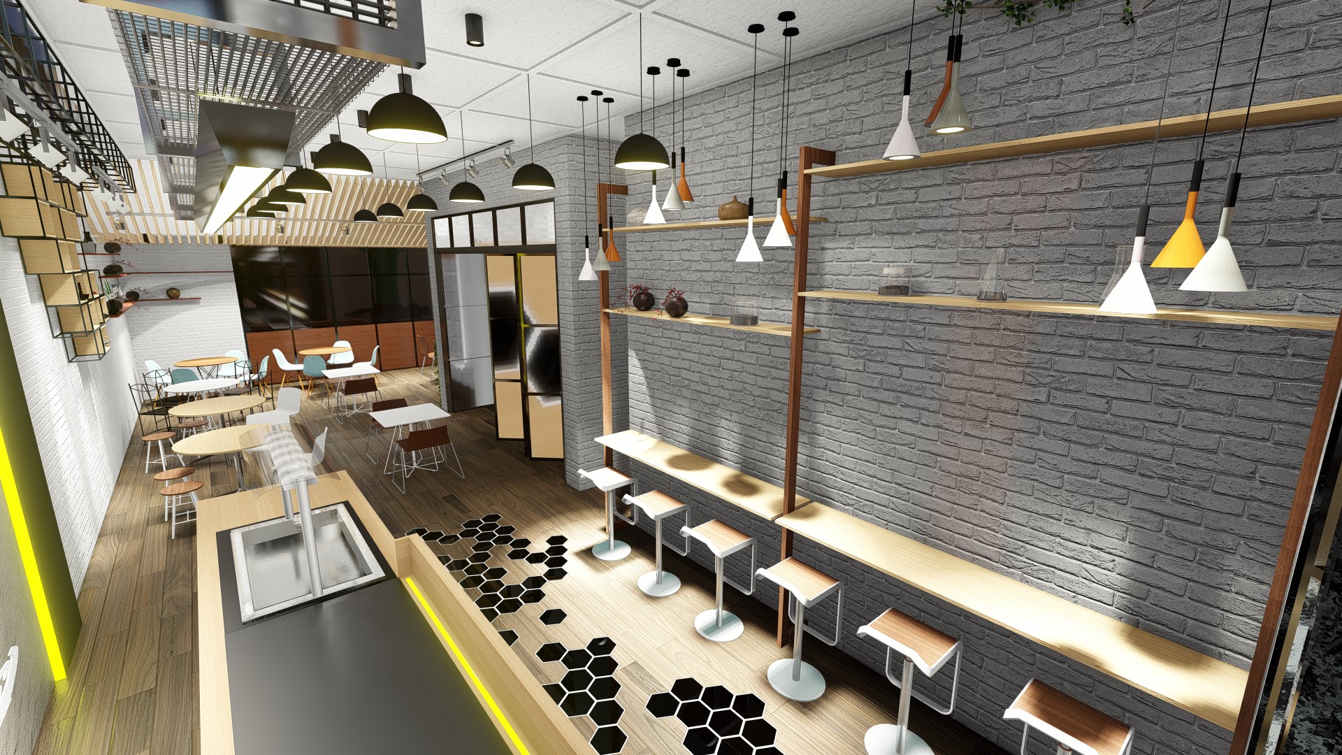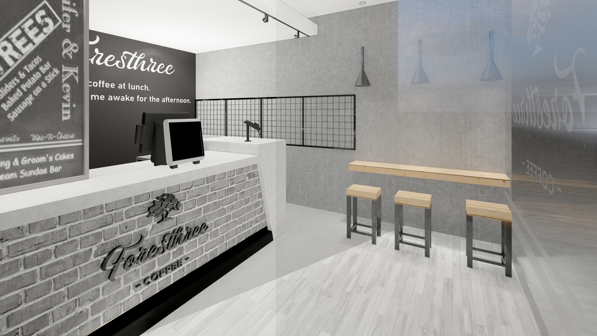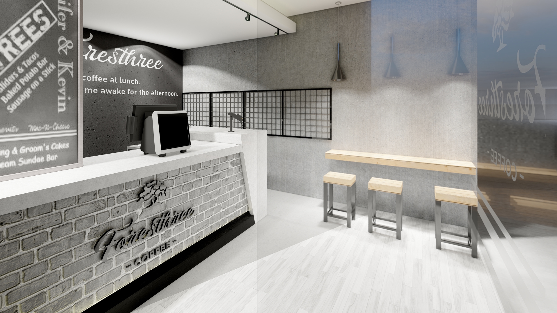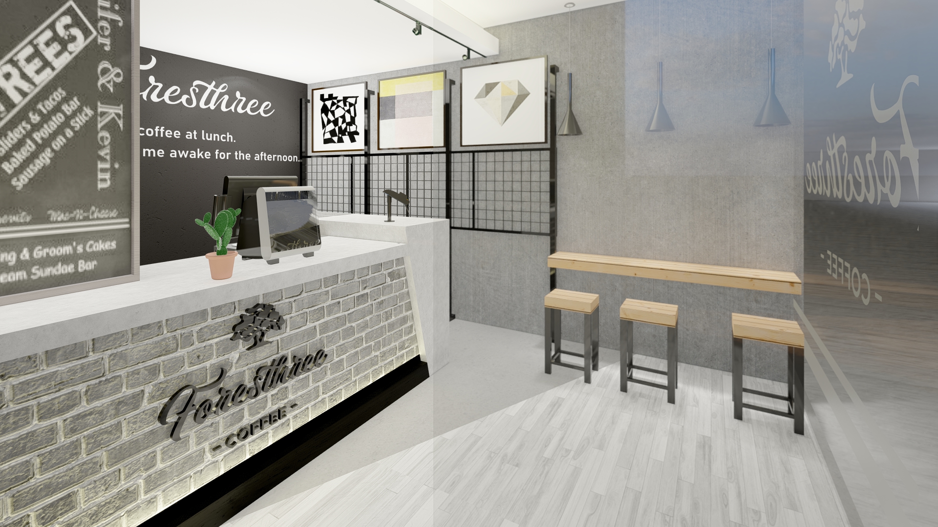 Jakarta, Design Located in the highrise building in Sudirman, Jakarta, the size of the coffeeshop could be said really small. With this limitation we try our best to still provide customer with waiting room, dine in option as well as providing enough spase for bar, storage room and rest room for the employee.