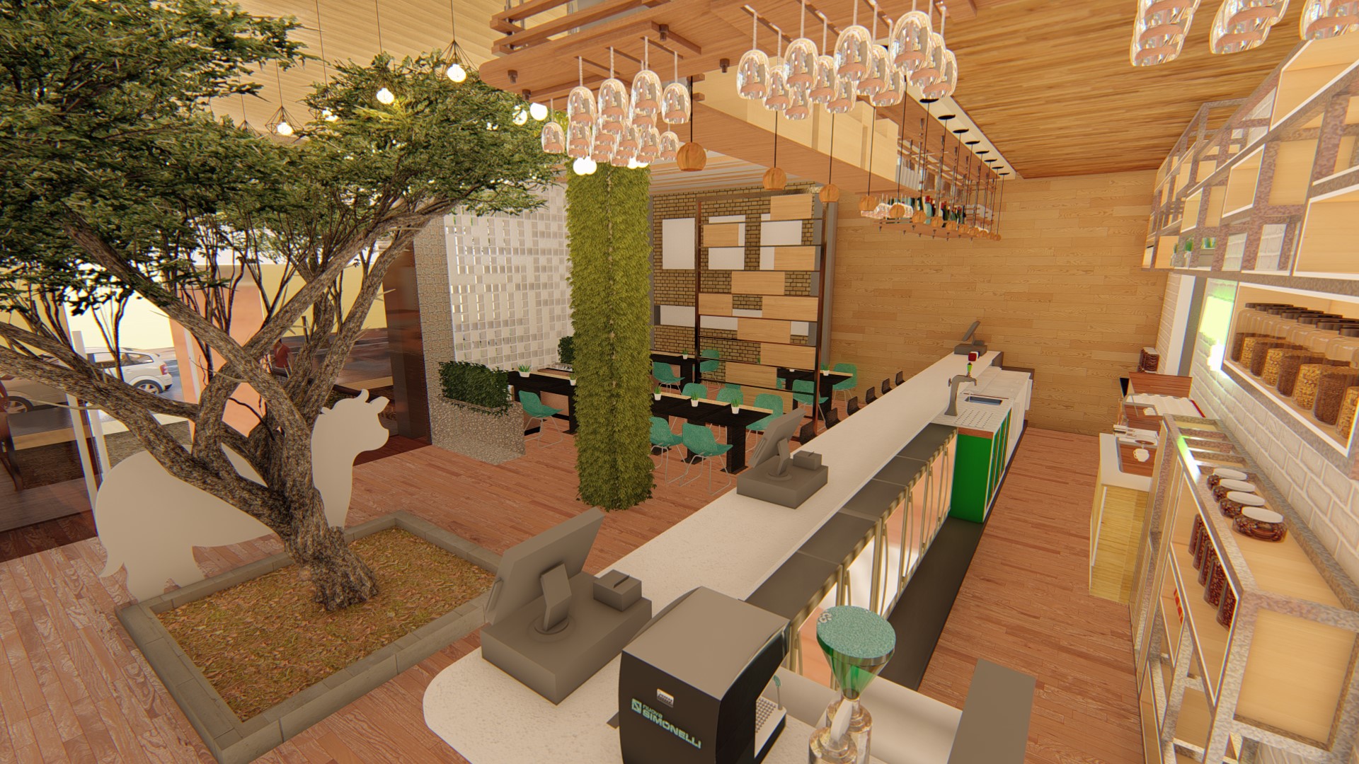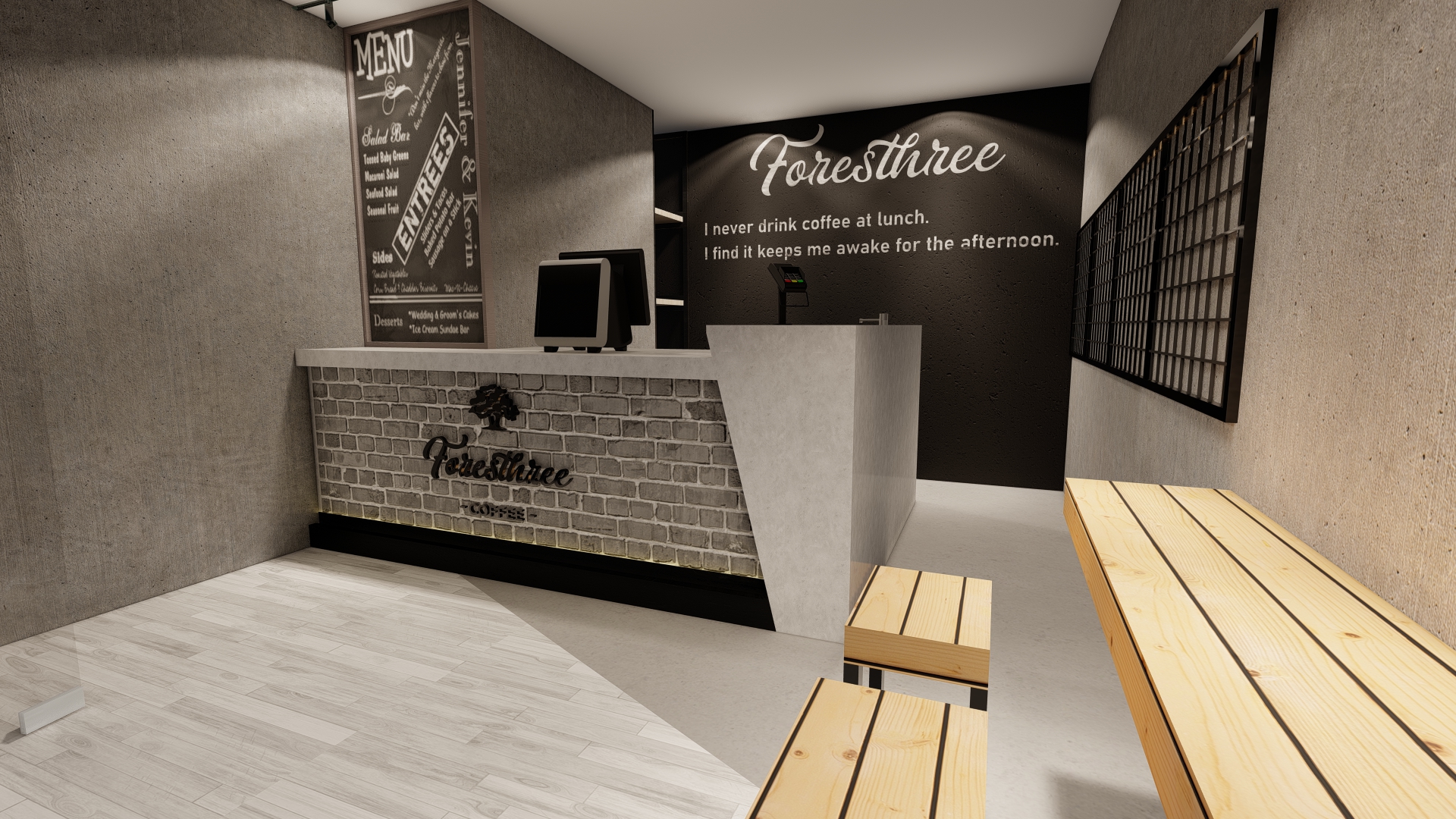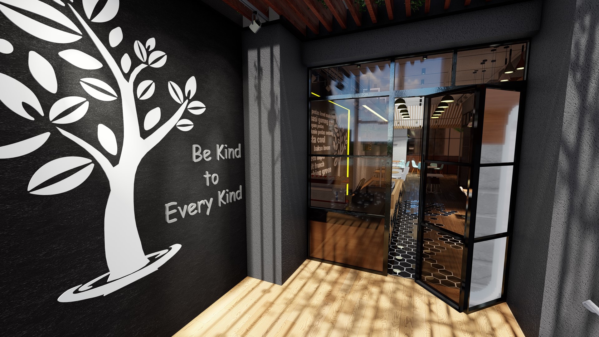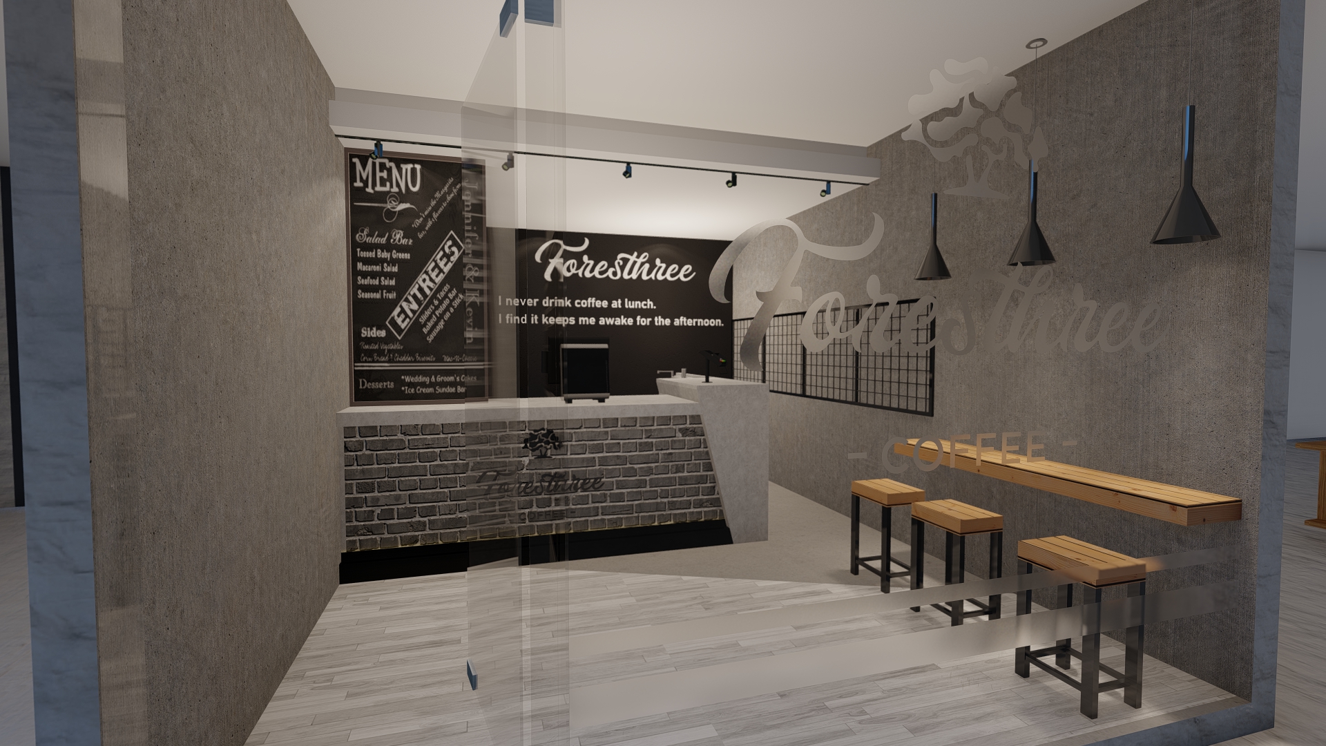 Jakarta, Design Located in the highrise building in Sudirman, Jakarta, the size of the coffeeshop could be said really small. With this limitation we try our best to still provide customer with waiting room, dine in option as well as providing enough spase for bar, storage room and rest room for the employee.