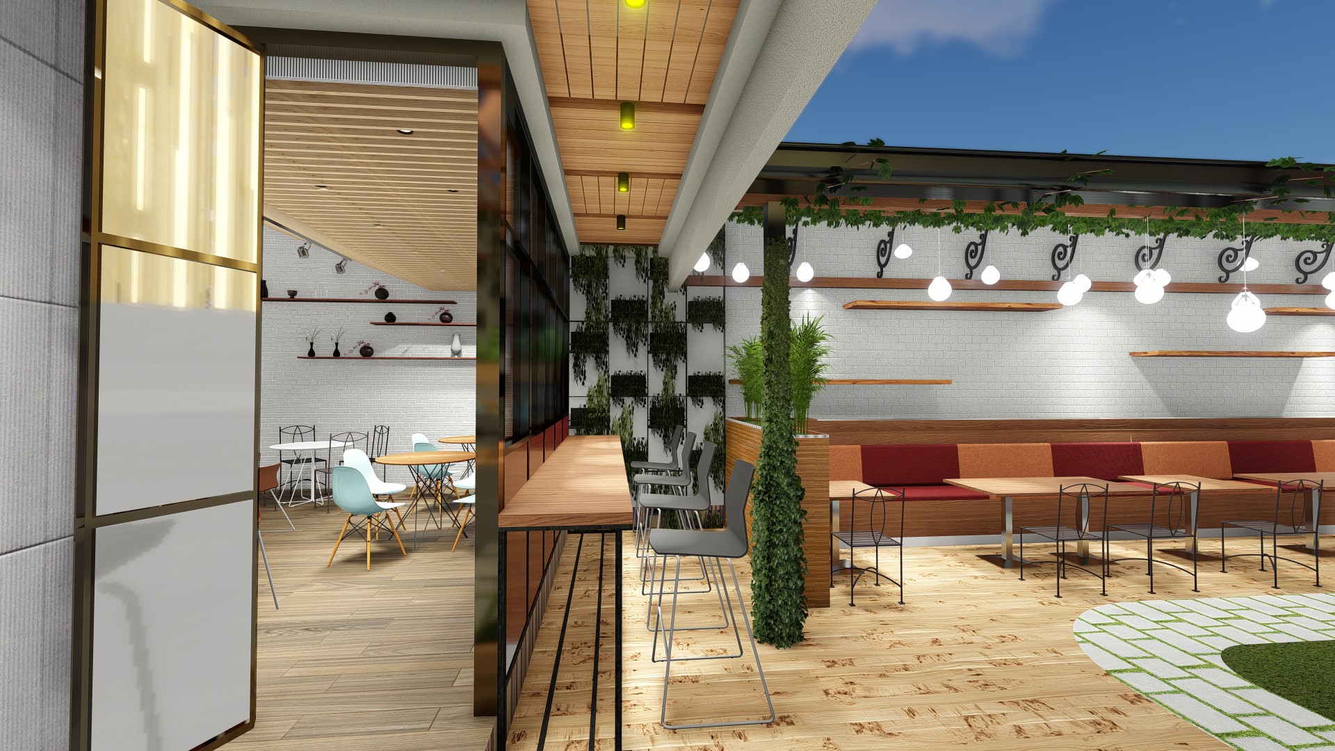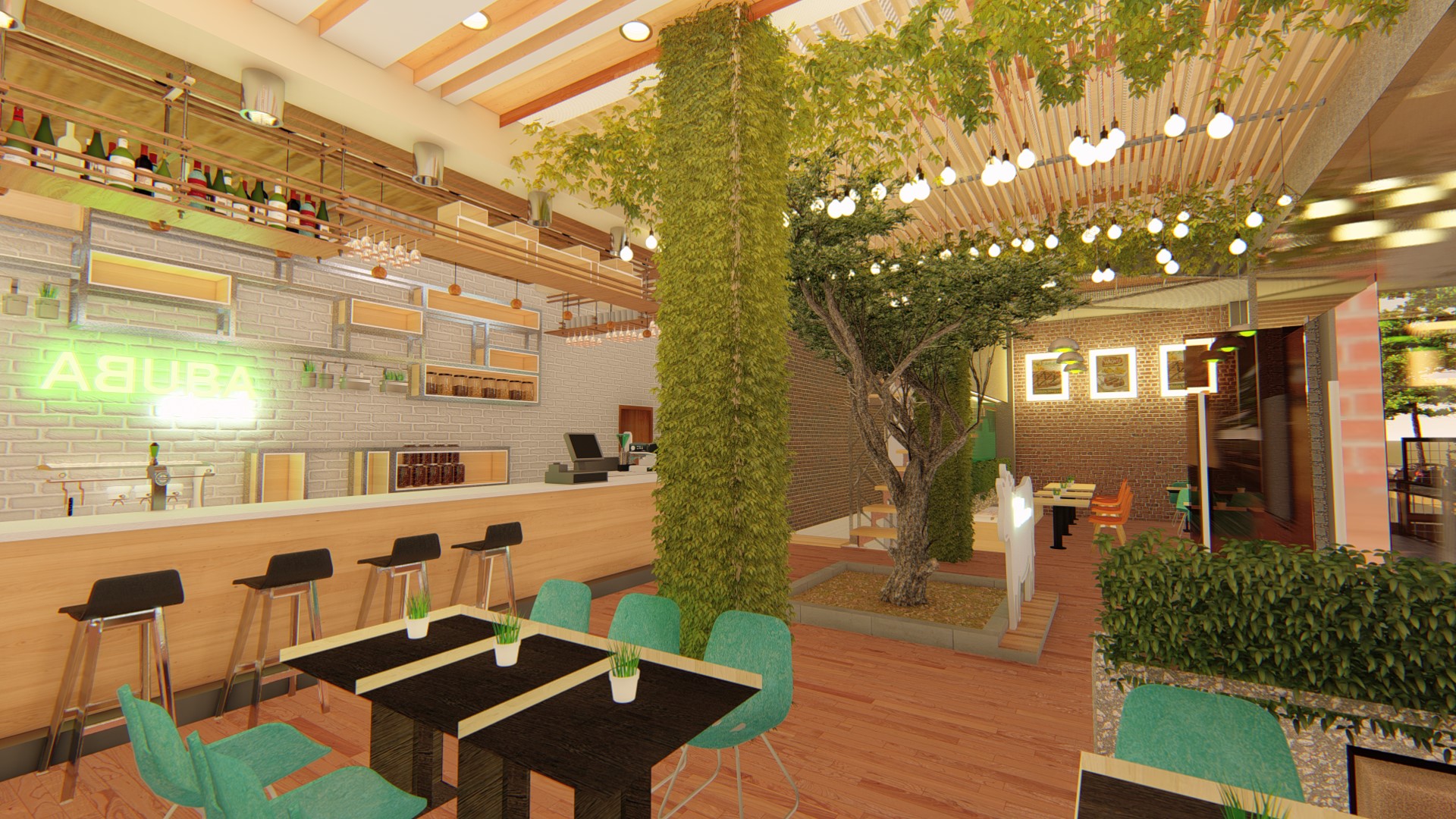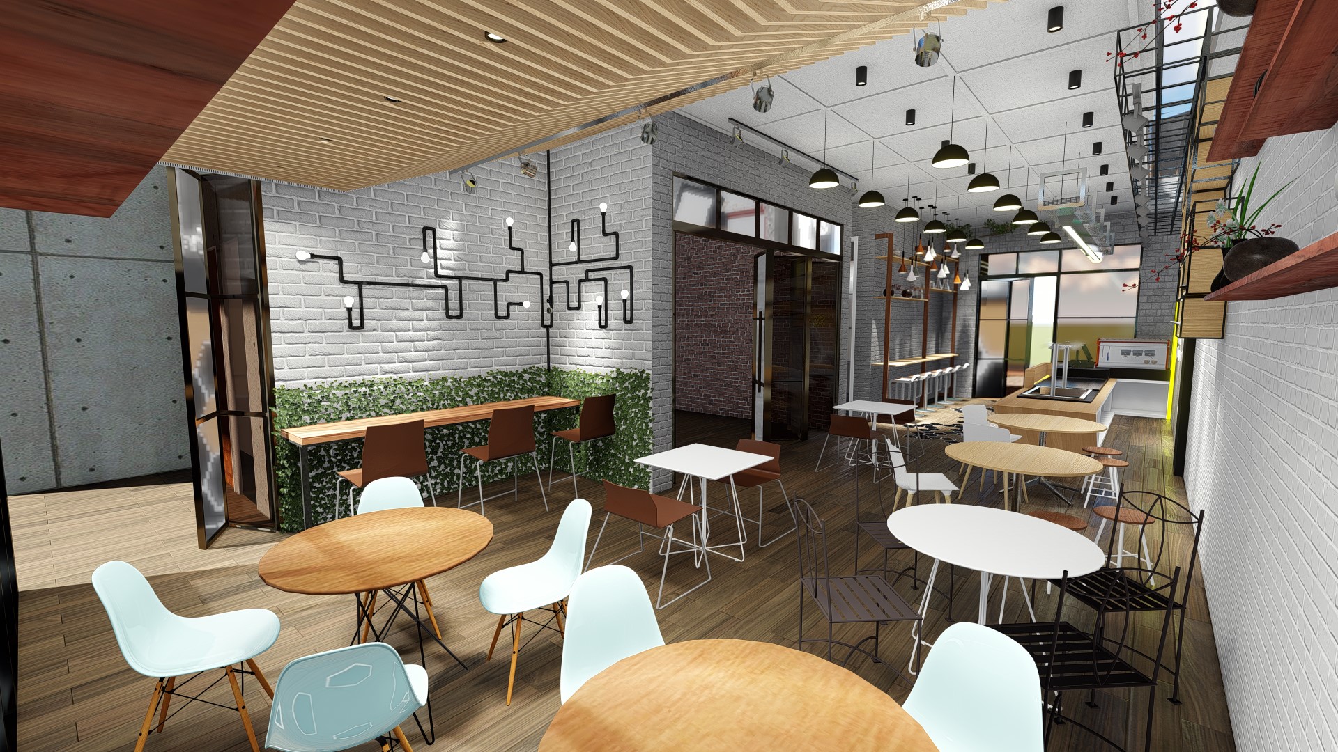 Located near sempur field, the area full of local café and coffeeshop, we try to distingush the design with implementing eclectism with combining, simple design, tropical, scandi, industrial and modern in various ways to give more distingush feture to the design. Located in the old house which we could not demolish, we try to use as many building existing layout as possible to create rooms while improving its zoning to accommodate live music, meeting room, kitchen, bar, storage and other facilities.