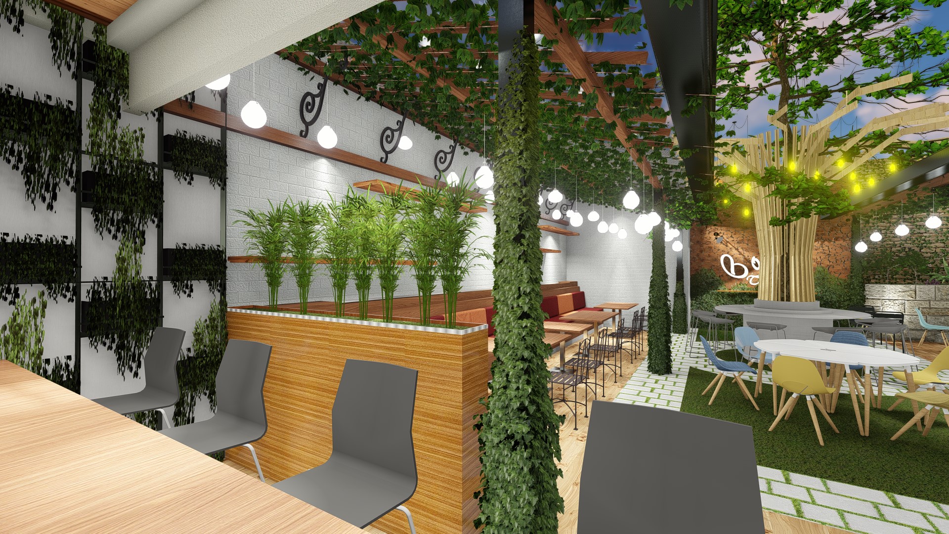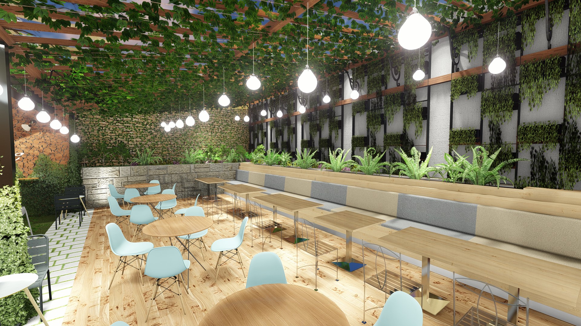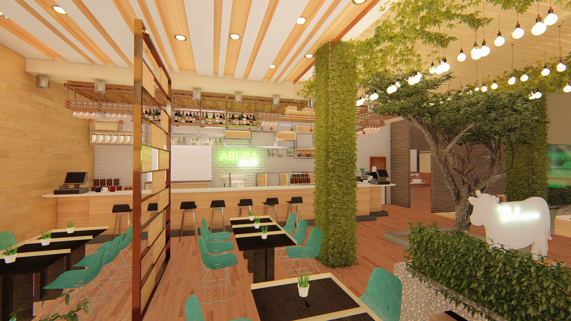 Located near sempur field, the area full of local café and coffeeshop, we try to distingush the design with implementing eclectism with combining, simple design, tropical, scandi, industrial and modern in various ways to give more distingush feture to the design. Located in the old house which we could not demolish, we try to use as many building existing layout as possible to create rooms while improving its zoning to accommodate live music, meeting room, kitchen, bar, storage and other facilities.